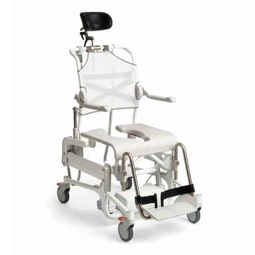 With excellent access around the seat area, personal care routines are made easier for the carer and can be performed with dignity for the user. For sensitive users, extra-soft, seat cushions are available. The soft and quick-drying backrest and curved footrests of the Swift Mobil-2, add to user comfort.