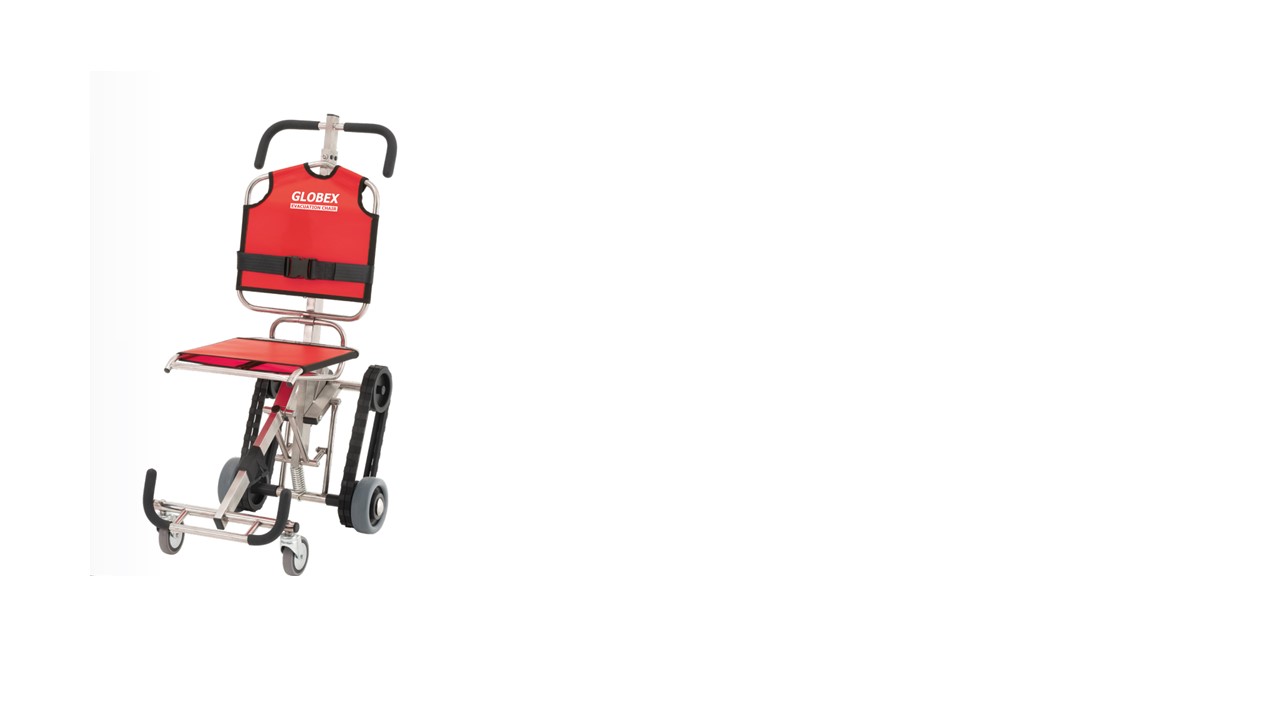 The GLOBEX SPIRAL EVACUATION CHAIR is one of the only evacuation chairs designed especially for spiral staircases or bends in a staircase that enables two people to evacuate a mobility impaired person safely and easily up and downstairs in the event of an emergency or when lifts cannot be used and can also be carried upstairs or over obstructions.