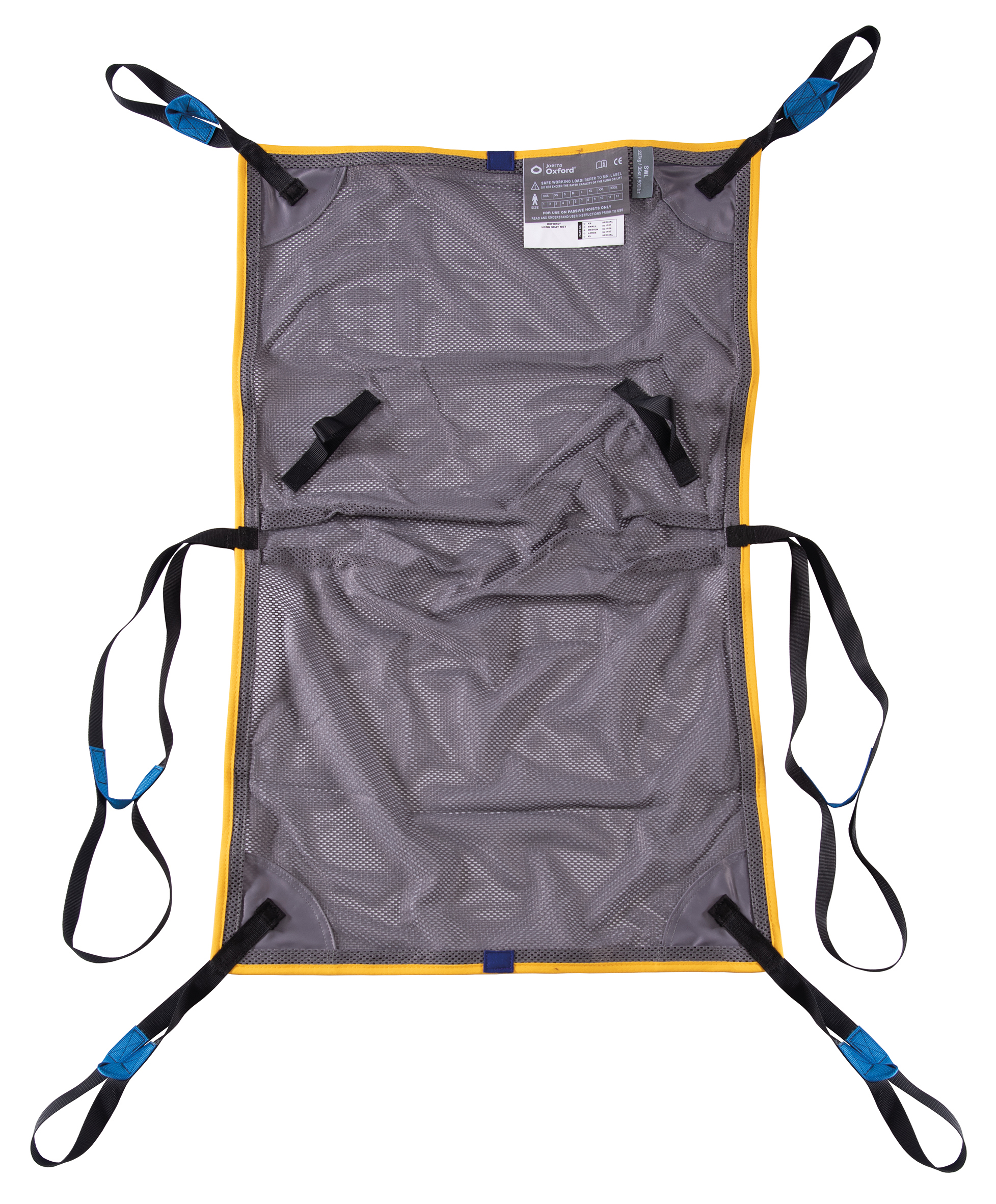 Available in polyester or net materials and available with or without commode aperture. Colour coded binding indicates sling size and positioning handles allow easy patient repositioning. Coloured attachment loops promote correct/safe positioning and can be customised to fulfil patient specific needs.