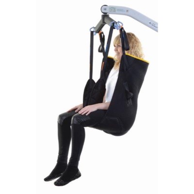Padded leg sections for increased comfort with colour coded binding which indicates sling size and positioning handles which allow patient repositioning. Coloured attachment loops promote correct/safe positioning and a modesty loop which helps protect patient dignity during transfer. Can be customised to fulfil patient specific needs.