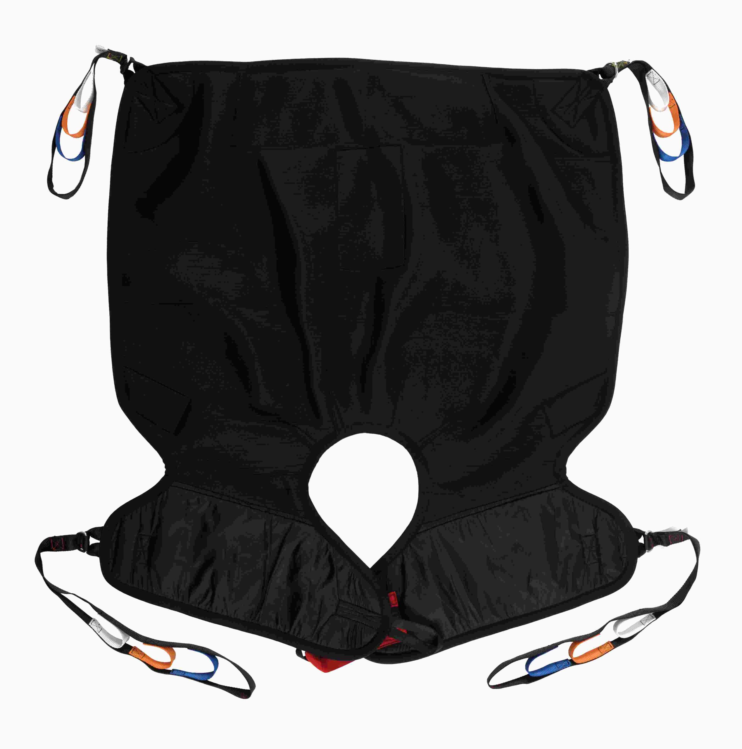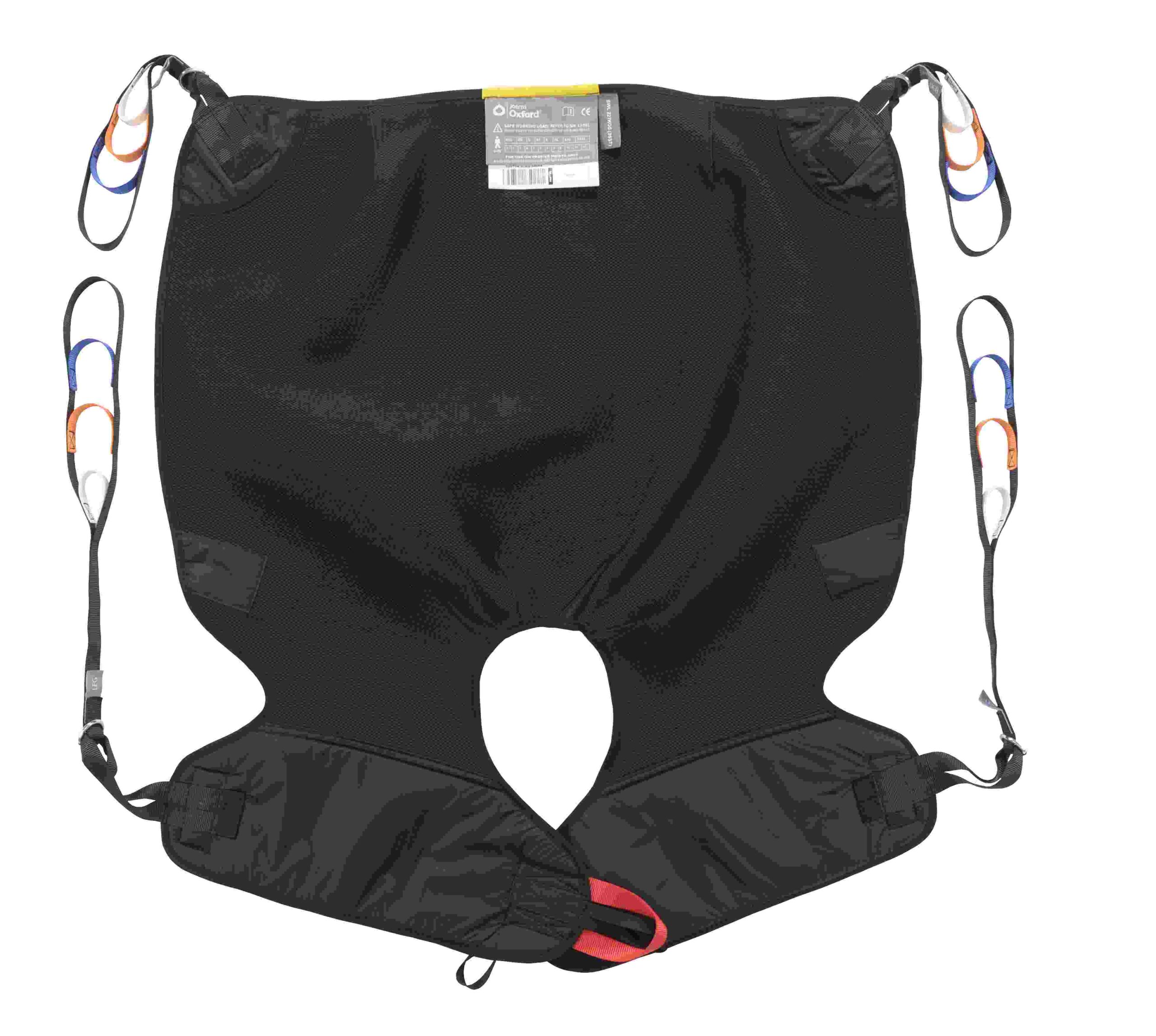 Available with or without head support. Suitable for amputees following careful assessment. Detachable leg and shoulder straps, colour coded binding tab on top section to denote size, coloured attachment loops which promote correct/safe positioning and modesty loops which help protect patient dignity during transfer. Can be customised to fulfil patient specific needs.