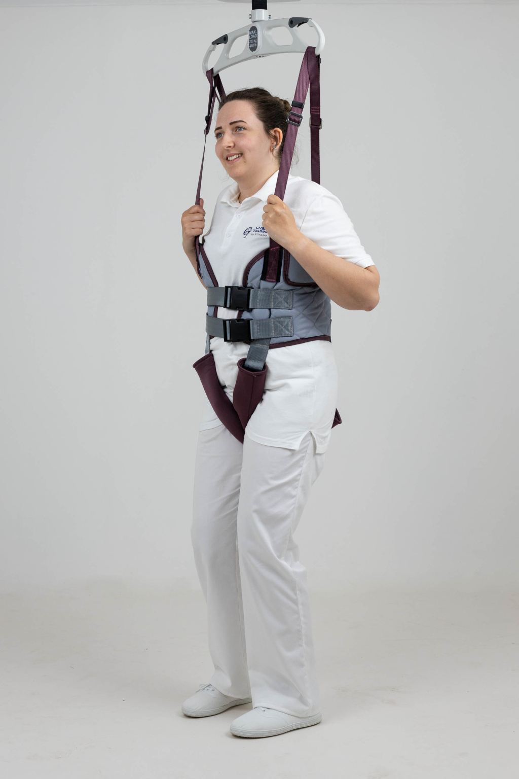 The Walking Harness offers a simple, padded, and adjustable solution to assist individuals with standing and walking. With its additional padding, adjustable tapes, and groin strap options, this harness provides optimal support and comfort, enhancing user independence during mobility activities.
